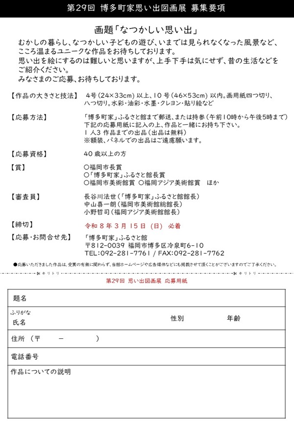 来年で29回目を迎える博多町家思い出図画展の作品を募集します。