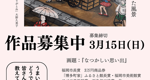 日程:1/5(月)、2/2(月)、3/2(月) 場所:「博多町家」ふるさと館 展示棟地下会議室 時間:14:00-15:30(15分前受付開始) 料金:3000円(全3回分) ※65歳以上(福岡市居住者)は2400円(証明書提示) ※初回、現金にておつりがでないようにお支払いください。 募集期間:11/25(火)から (定員12名に達し次第、受付終了) 応募方法:メールにて (氏名・年齢・住所(○○市のみ)・電話番号を記載) メールアドレス⇒furusatokan@hakata-machiya.com